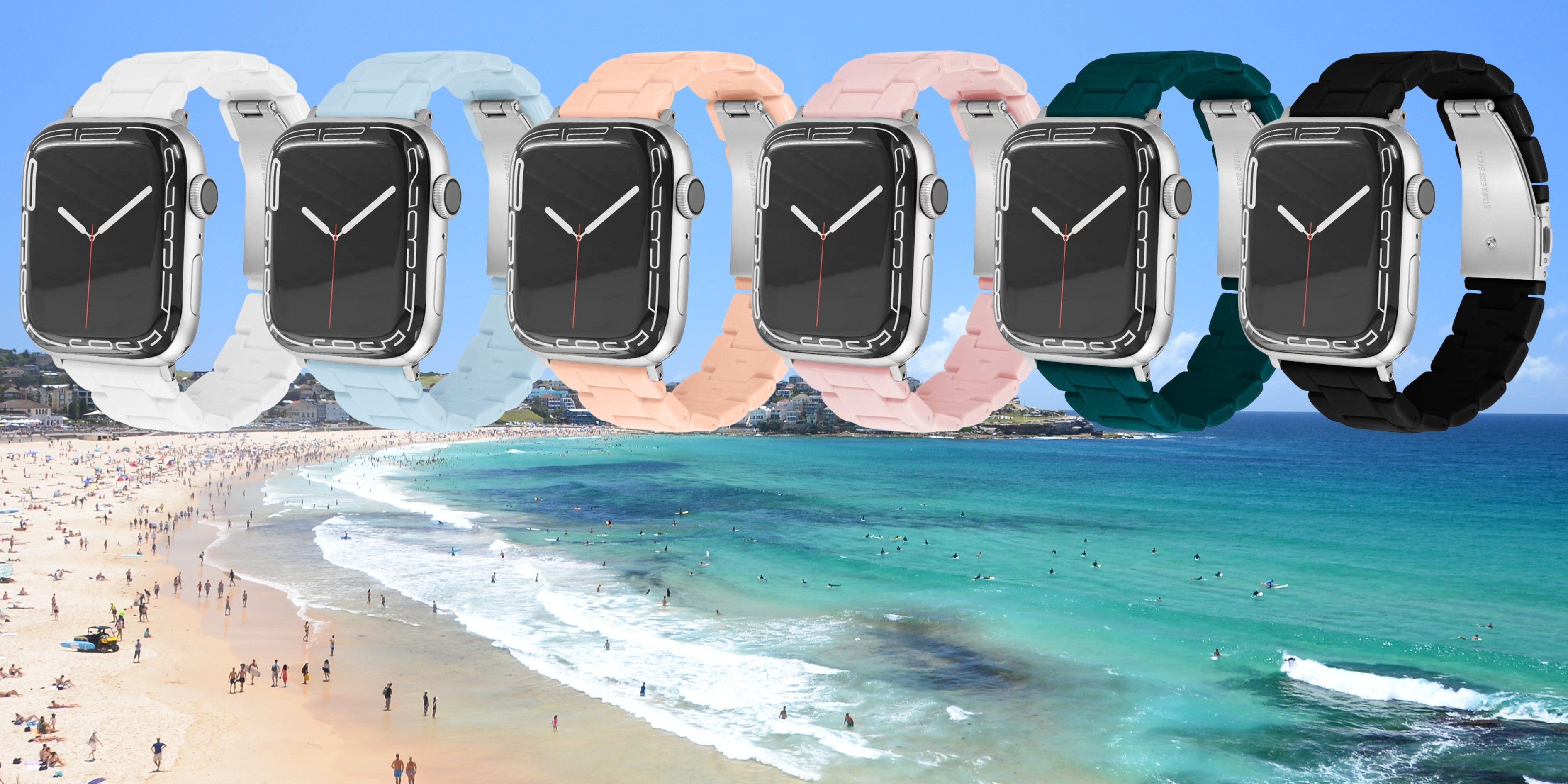 Sydney Beaches Resin Link Band. Inspired by Sydneyâs most iconic beaches and Australiaâs love of sun, saltwater, and surf.