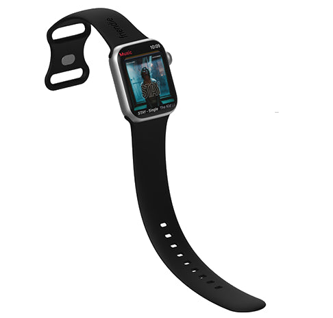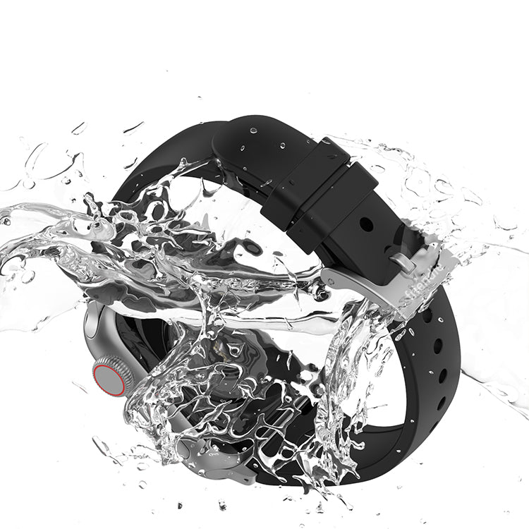 Silicone Sports Band Black with Silver Pin - The Noosa Large - Compatible with Apple Watch Size 42mm to 45mm